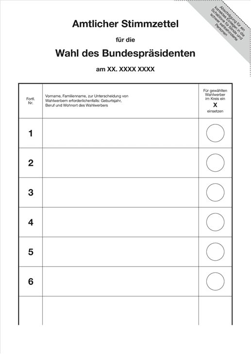 (1) Bei der Wahl des Bundespräsidenten werden amtliche Stimmzettel verwendet.