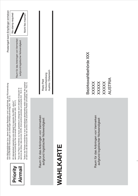 (1) Für die Wähler sind blaue undurchsichtige Wahlkuverts zu verwenden, die auf der Lasche jeweils den Aufdruck „Bitte dieses Kuvert nicht zukleben!“ aufweisen.