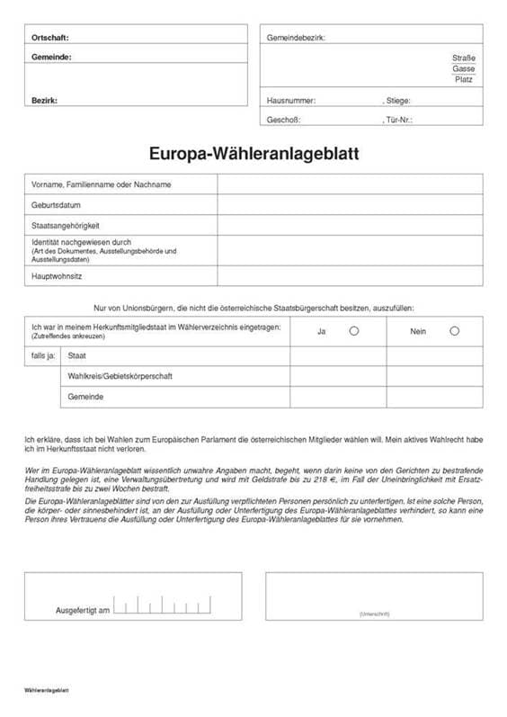 (2) Aus der förmlichen Erklärung hat ihre Staatsangehörigkeit und ihre Anschrift in Österreich hervorzugehen. Weiters hat aufzuscheinen, in welchem Wählerverzeichnis des Herkunftsmitgliedstaates sie gegebenenfalls zuletzt eingetragen gewesen sind.