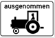 Eine solche Zusatztafel unter dem Zeichen „Überholen verboten“ zeigt an, dass Zugmaschinen, Motorkarren, selbstfahrende Arbeitsmaschinen und vierrädrige Leichtkraftfahrzeuge überholt werden dürfen.