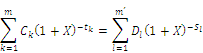 dabei ist S der Saldo der Gegenwartswerte aller „Ströme“, deren Wert gleich Null sein muss, damit die Gleichheit zwischen den „Strömen“ gewahrt bleibt.