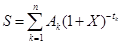 e) Mathematisch darstellen lässt sich diese Gleichung durch eine einzige Summation unter Verwendung des Faktors „Ströme“ (Ak), die entweder positiv oder negativ sind, je nachdem, ob sie für Auszahlungen oder für Rückzahlungen innerhalb der Perioden 1 bis k, ausgedrückt in Jahren, stehen: