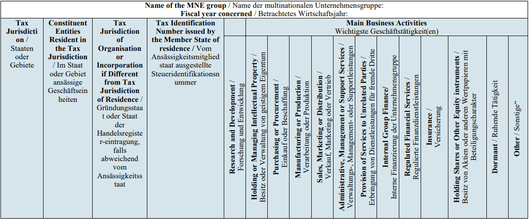 | Name of the MNE group / Name der multinationalen Unternehmensgruppe: Fiscal year concerned / Betrachtetes Wirtschaftsjahr: |