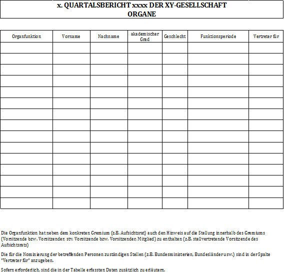 Nennung sämtlicher Organmitglieder, welche mit der Geschäftsleitung des Rechtsträgers (z. B. Vorstand) oder ihrer Kontrolle (z. B. Aufsichtsrat) betraut sind.