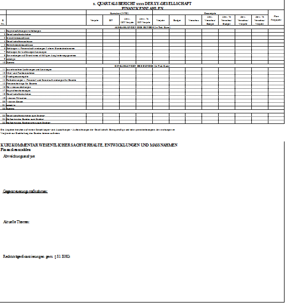 Die Kennzahlen in der Spalte Gesamtjahr/Vorjahr sind – sobald dieser vorliegt – auf der Grundlage des festgestellten und geprüften Jahresabschlusses der Gesellschaft zu erfassen bzw. zu berechnen.