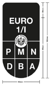 Anlage 1PDFDie Abgasklassen-Kennzeichnungsplakette muss nach den unten dargestellten Mustern ausgeführt sein und aus einer lichtechten, wetterfesten, widerstandsfähigen Folie bestehen. Sie muss mit einem festgesetzten Schutzzeichen (Ensure) versehen sein, das unter den Außenschichten der Folie angebracht ist. Sie muss an ihrer Oberseite ein Feld aufweisen, in das die letzten sechs Stellen der Fahrzeugidentifizierungsnummer einzustanzen oder gemäß § 4 Abs. 1a einzutragen sind.