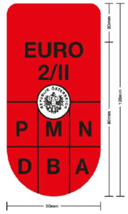 (3) Für die Kennzeichnung von Fahrzeugen, die in die Abgasklasse „Euro 2“ fallen, ist die Abgasklassen-Kennzeichnungsplakette gemäß der Abbildung 2 der Anlage 2 zu verwenden.
