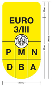 (4) Für die Kennzeichnung von Fahrzeugen, die in die Abgasklasse „Euro 3“ fallen, ist die Abgasklassen-Kennzeichnungsplakette gemäß der Abbildung 3 der Anlage 2 zu verwenden.