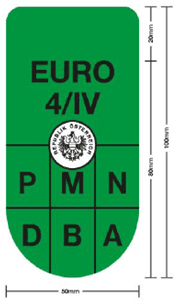 (5) Für die Kennzeichnung von Fahrzeugen, die in die Abgasklasse „Euro 4“ fallen, ist die Abgasklassen-Kennzeichnungsplakette gemäß der Abbildung 4 der Anlage 2 zu verwenden.