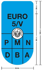 (6) Für die Kennzeichnung von Fahrzeugen, die in die Abgasklasse „Euro 5“ fallen, ist die Abgasklassen-Kennzeichnungsplakette gemäß der Abbildung 5 der Anlage 2 zu verwenden.