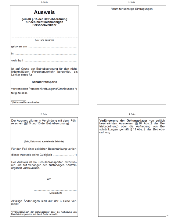 (2) Die Dokumente gemäß Abs. 1 sind bei Schülertransporten mitzuführen und den Organen des öffentlichen Sicherheitsdienstes oder der Straßenaufsicht auf Verlangen zur Überprüfung auszuhändigen.