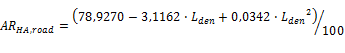 Für die Berechnung des absoluten Risikos AR sind in Bezug auf die gesundheitsschädlichen Auswirkungen von starker Belästigung HA folgende Dosis-Wirkung-Relationen zu verwenden: