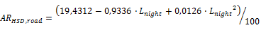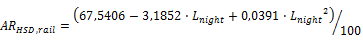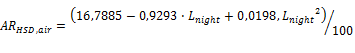 Für die Berechnung des absoluten Risikos AR sind in Bezug auf die gesundheitsschädlichen Auswirkungen von starker Schlafstörung HSD folgende Dosis-Wirkung-Relationen zu verwenden: