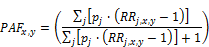 – PAF x,y das zurechenbare Risiko für die gesamte Bevölkerung (population attributable fraction);
