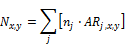 – AR x,y das absolute Risiko AR der betreffenden gesundheitsschädlichen Auswirkung (HA, HSD), deren Berechnung anhand der in Punkt 2 dieses Anhangs beschriebenen Formeln für den mittleren Wert jedes Bereichs (z. B. 50,5 dB für den Bereich 50–51 dB oder 52,5 dB für den Bereich 50–55 dB – je nach Datenverfügbarkeit) erfolgt;