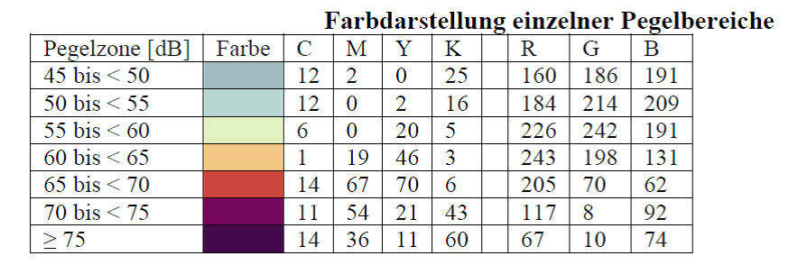 (4) Bei einem Ausdruck der strategischen (Teil-)Umgebungslärmkarte ist für die Darstellung der Farben das Farbsystem Pantone gemäß Anlage 1 zu verwenden.