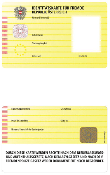 Identitätskarten für Fremde werden nach dem Muster der Anlage B ausgestellt.
