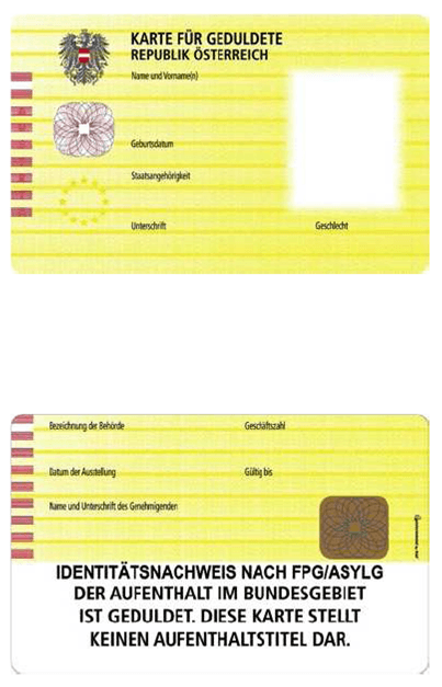 Karten für Geduldete werden nach dem Muster der Anlage A ausgestellt.
