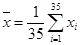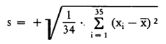 wobei x i die jeweils gemessenen Volumen der 35 Maßbehältnis-Flaschen der Stichprobe darstellen.