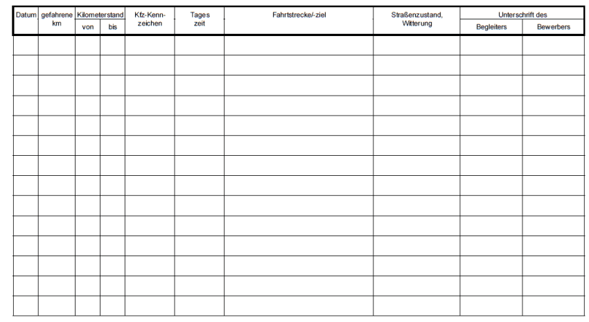 1. die Durchführung einer Ausbildungsfahrt in der Dauer von einer Unterrichtseinheit, wobei der oder ein Begleiter neben dem Bewerber sitzt,