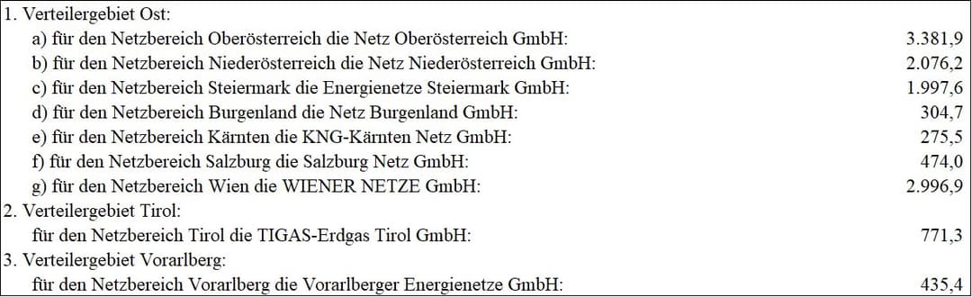 (2) Diese Verordnung bestimmt das Verfahren der Kostenwälzung gemäß § 83 Abs. 3 GWG 2011, der Verrechnungsmodalitäten der Systemnutzungsentgelte, die Ausgleichszahlungen zwischen den Netzbetreibern eines Netzbereichs, das Entgelt für die Erfüllung der Aufgaben eines Verteilergebietsmanagers für die Verteilergebietsmanager der Verteilergebiete Ost, Tirol und Vorarlberg sowie die folgenden Systemnutzungsentgelte für das Verteilernetz: