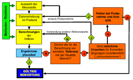 (7) Die Prüfung, ob ein Messergebnis eines biologischen Qualitätselementes gültig ist, erfolgt gemäß Anlage 5 . Hierbei werden natürliche Variabilitätsfaktoren und anthropogene Einflussquellen berücksichtigt. Liegt ein ungültiges Messergebnis vor, ist die jeweilige Messung zu wiederholen.