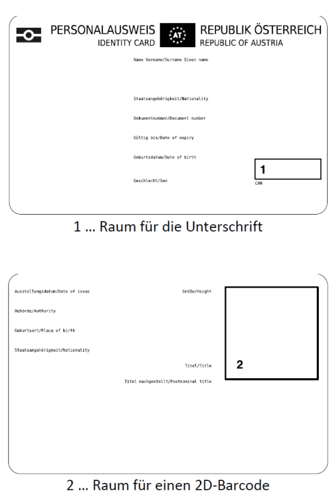 (2) Auf der Rückseite des Personalausweises dürfen über der maschinenlesbaren Zone in einem Feld im Hochformat Angaben zum Hersteller und die Chargennummer aufgebracht werden.