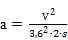 | V km/h | a m/s 2 | s m | V km/h | a m/s 2 | s m |