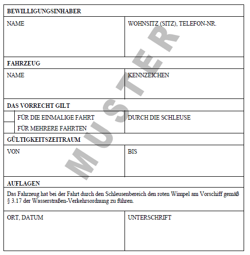 7. Für die Durchfahrt durch die Schleuse gelten die Bestimmungen des § 6.28 Z 15 lit. b, c und f nicht.