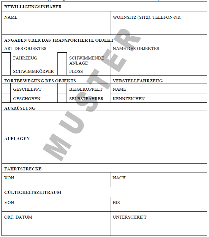 6. Inhabern eines Privatrechtstitels für das Fahren oder Reiten auf Treppelwegen ist über Antrag durch die Bundeswasserstraßenverwaltung eine Bescheinigung auszustellen, aus der zeitlicher und örtlicher Umfang der Berechtigung ersichtlich sind.