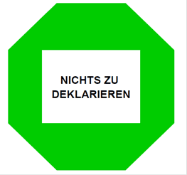 (Beschreibung: grünes Achteck mit weißem Rechteck, das den Schriftzug „NICHTS ZU DEKLARIEREN“ in schwarzer oder grüner Schrift enthält)