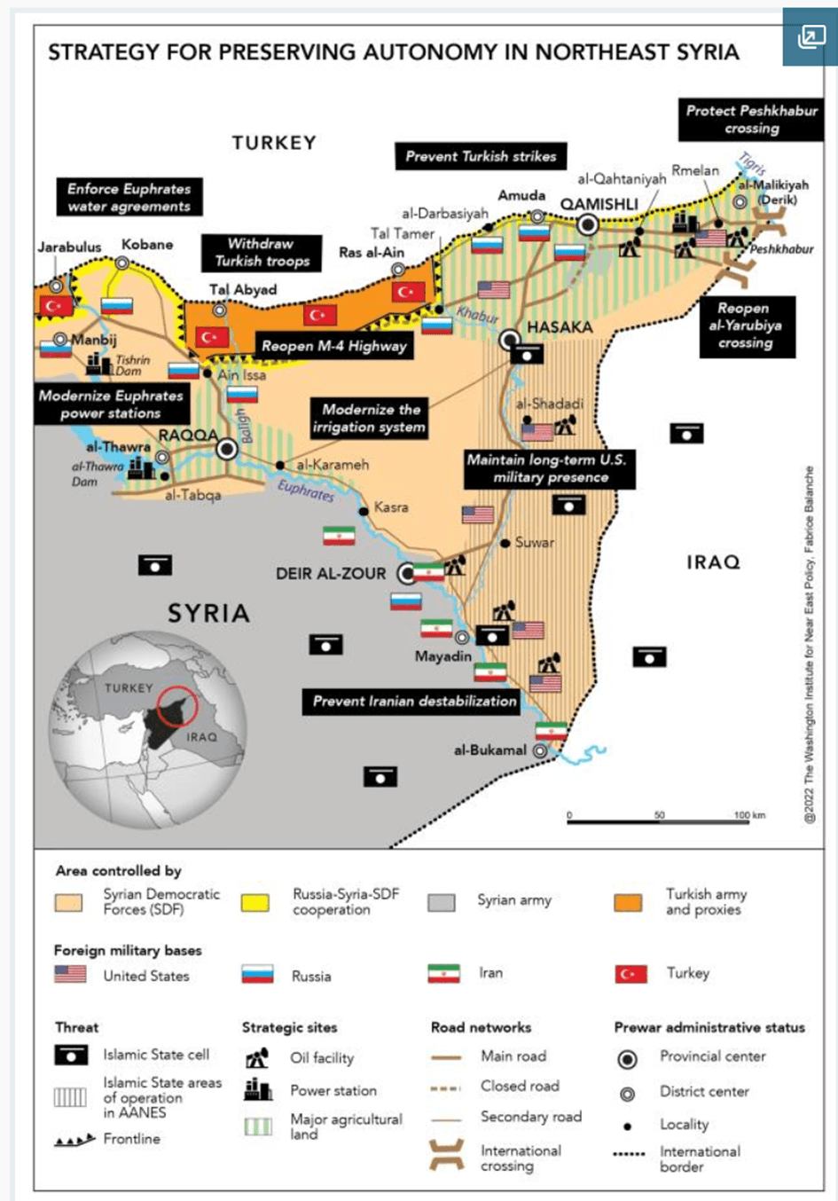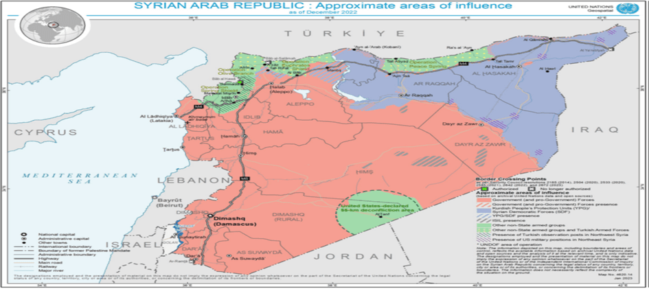 Fabrice Balanche, Associate Professor und Forschungsdirektor an der Universität Lyon 2, habe in einer E-Mail vom 23.08.2023 an ACCORD erklärt, dass das Gebiet an der türkischen Grenze in der Provinz Hasaka (östlich von Ras Al-Ain) unter der Kontrolle der SDF stehe. Es gebe ein paar syrische Militärposten, doch diese seien isoliert und symbolischer Natur. Die syrische Armee könne in dieser Gegend nichts unternehmen.