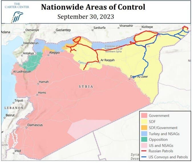 Das Gouvernement Deir ez-Zor ist grob in zwei Kontrollbereiche unterteilt. Der westliche Teil des Gouvernements - d.h. vor allem die Gebiete westlich des Euphrat - wird von der syrischen Regierung und ihren iranischen und russischen Verbündeten kontrolliert. Dieses Gebiet umfasst die wichtigsten Städte (Deir Ez-Zor, Mayadin und Al-Bukamal) und die logistische Route, die die von der Regierung kontrollierten Gebiete mit der syrisch-irakischen Grenze verbindet. Der östliche Teil des Gouvernements - die meisten Gebiete östlich des Euphrat - wird von den kurdisch dominierten SDF und ihren Verbündeten in der US-geführten Koalition kontrolliert (EUAA 9.2022; vgl. JfS 12.1.2021). Da die SDF ihre Einflusssphären in der Region von der östlichen Seite her bis zum Euphrat ausdehnten, ist das al-Omar-Feld nun als die größte USMilitärbasis in Syrien bekannt. Das Feld im Osten von Deir ez-Zor ist das größte Ölfeld in Syrien (Enab 23.9.2022; vgl. EUAA 9.2022).
