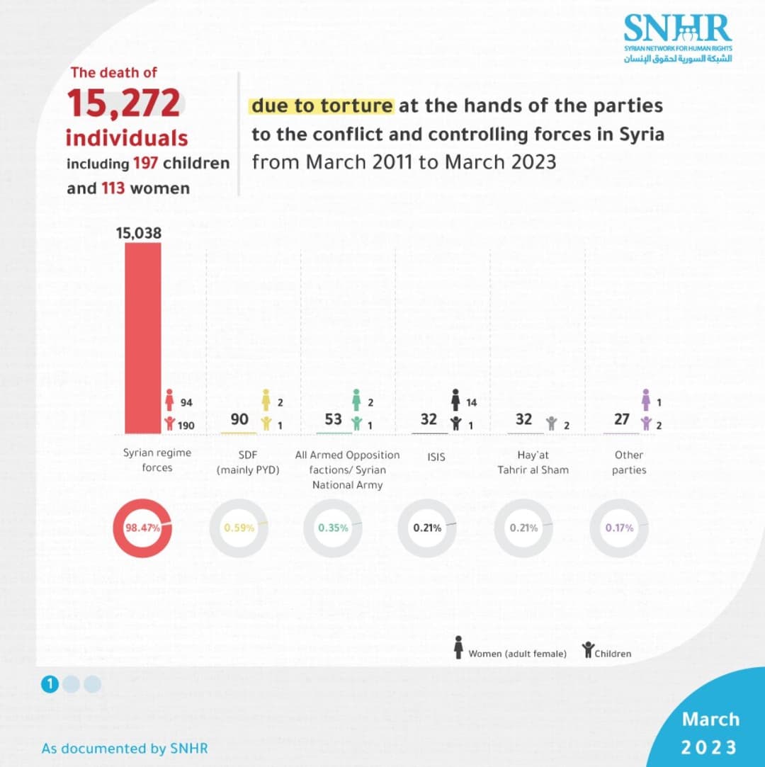 Die Syrische Beobachtungsstelle für Menschenrechte mit Sitz in London (SOHR), verzeichnete für das Jahr 2023 mit 4.361 getöteten Personen die höchste Todesopferzahl in drei Jahren. Darunter zählten sie 1.889 ZivilistInnen, darunter 307 Kinder und 241 Frauen (SOHR 31.12.2023).