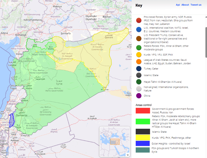 1.2.5. Die nachstehende Karte zeigt die Gebietskontrolle der verschiedenen Akteure in Syrien mit Stand 13.01.2025.