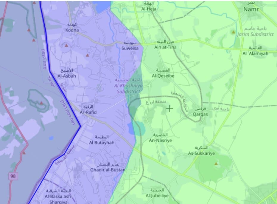 Anhand der Live Universal Awareness Map Syria (https://syria.liveuamap.com) in Zusammenschau mit den Aussagen des Beschwerdeführers vor dem Bundesverwaltungsgericht (VP, Seite 8) kann die Feststellung getroffen werden, dass die Stadt XXXX und deren Umgebung derzeit militärisch von Israel, das seine Bodentruppen ab Dezember 2024 in die entmilitarisierte Pufferzone unter Aufsicht der UNDOF und auch knapp darüber hinaus verlegte, gehalten wird.