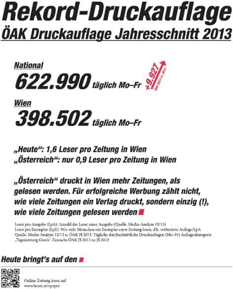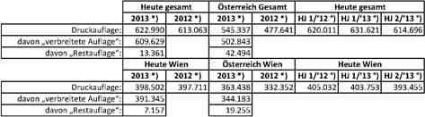 Beide Zeitungen werden in der ÖAK und der Media Analyse ausgewiesen. Die ÖAK hat folgende Jahresschnitte 2013 und 2012 und folgende Halbjahreszahlen erhoben: