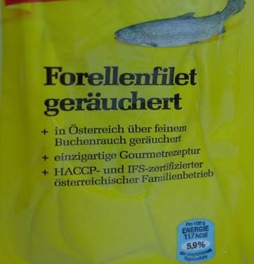 Die beklagte Partei ist im Lebensmitteleinzelhandel tätig. Sie bot in ihren Filialen sowie in ihrem Onlineshop geräucherte Forellenfilets in folgender Verpackung an: