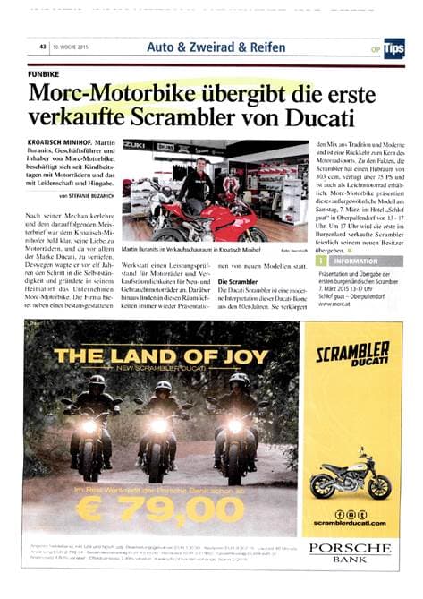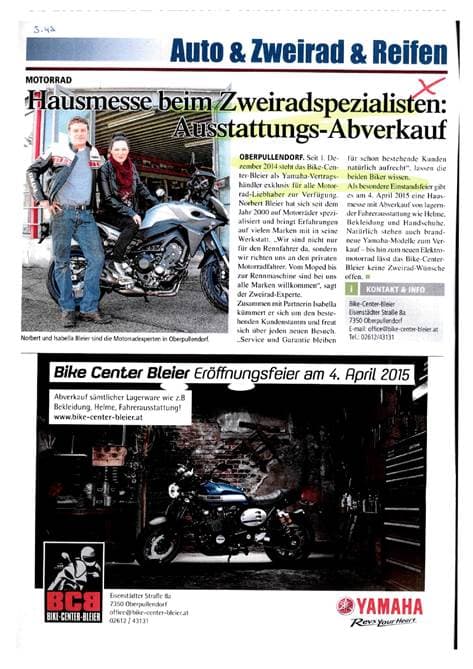 Für das Erscheinen der gesamten Seite 42, bestehend aus einem klassischen Inserat in der unteren Seitenhälfte und dem von einem Redakteur der Beklagten verfassten Bericht mit dem Titel „Hausmesse für Zweiradspezialisten: Ausstattungs Abverkauf“ in der oberen Seitenhälfte, zahlte der dort genannte Unternehmer an die Beklagte 718,20 EUR. Er hatte mit der Vertreterin der Beklagten das Erscheinen eines Artikels und eines Inserats gegen Bezahlung eines Gesamtentgelts vereinbart. Auch der auf Seite 43 beworbene Unternehmer zahlte einen gleich hohen Betrag für diese Seite, deren Inhalt mit ihm besprochen wurde, bestehend aus einem klassischen Inserat in der unteren Seitenhälfte und einem von einem Redakteur der Beklagten verfassten Bericht mit dem Titel „M***** übergibt die erste verkaufte Scrambler von Ducati“ in der oberen Seitenhälfte, an die Beklagte. Für die Veröffentlichung der übrigen Artikel wurde von den darin vorgestellten Unternehmern jeweils kein Entgelt bezahlt.