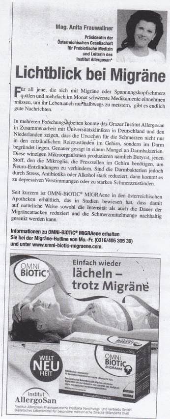 Am 19. 9. 2015 warb die Beklagte im wöchentlich erscheinenden Frauenmagazin „Madonna“ mit den Aussagen „Einfach wieder lächeln – trotz Migräne“ . „OMNi BiOTiC MIGRAene reduziert Intensität und Häufigkeit von Migräne natürlich aus dem Bauch heraus – ohne unerwünschte Effekte“.