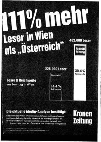 2.2. Die Klägerin geht in ihrem Vorbringen nämlich ganz selbstverständlich von folgendem Eindruck der beanstandeten Einschaltung aus: „dass 'Österreich' bei der Reichweite 'Wien' am Sonntag […] eine Reichweite von […] aufweise; während die 'Kronen Zeitung' bei der Reichweite 'Wien' am Sonntag […] eine Reichweite von […] aufweise.“