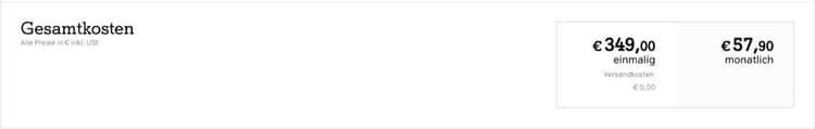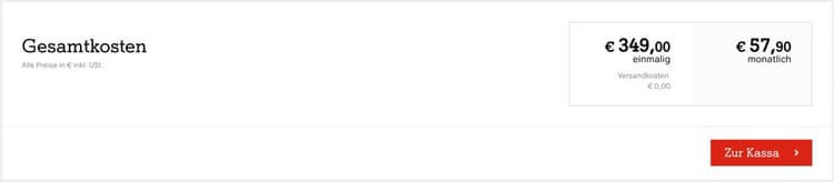 [6] Klickte der Verbraucher unter dem Feld „Gesamtkosten“ auf den Button „Zur Kasse“, wurde er zur Eingabe der persönlichen Daten aufgefordert. Nach Eingabe seiner Daten für Vertrag, Versand und Bezahlung wurde folgende Zusammenfassung angezeigt: