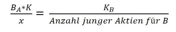 X: Anzahl der jungen Aktien, die der Inferentin, sofern sie die Mehrleistungen nicht erbringt, tatsächlich zuzuteilen sind.