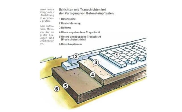 Der normgerechte Aufbau einer gepflasterten Fläche stellt sich wie folgt dar: