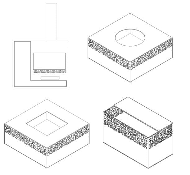 Bei diesen Überlegungen sind andere Bauarten für Feuerschalen und Kaminöfen, zB aus Materialien wie Stein oder Keramik, oder mit nicht quaderförmiger Grundform noch gar nicht berücksichtigt.