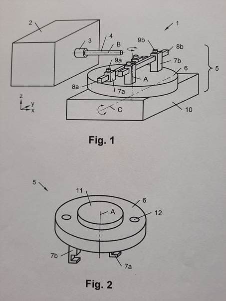 Der Werkstückträger ist angetrieben drehbar um eine Achse, die bezogen auf Beilage ./O etwa normal auf die Papierebene angeordnet ist. […]