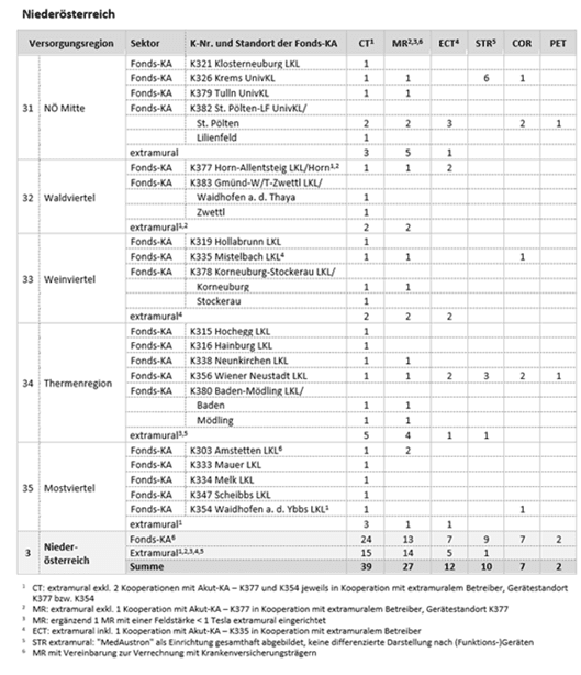 Kassenverträgen, selbstständige Ambulatorien mit Kassenverträgen einschließlich der eigenen Einrichtungen der Versicherungsträger, Spitalsambulanzen;