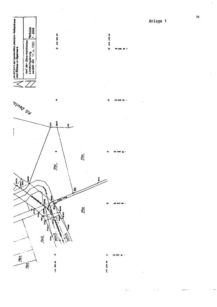 (2) Der Verlauf der Landesgrenze in der im Absatz 1 genannten Grenzstrecke und die nach Absatz 1 maßgebenden Grenzpunkte sind im Plan im Maßstab 1:2000 (Anlage 1) dargestellt. Die Koordinanten der Grenzpunkte sind im Gauß-Krüger-System (Meridian 34 Grad östlich Ferro) berechnet und im Koordinatenverzeichnis (Anlage 2) ausgewiesen.