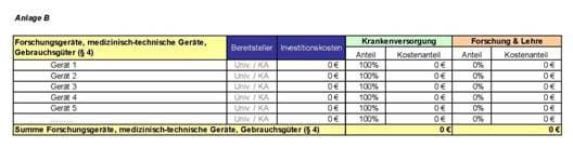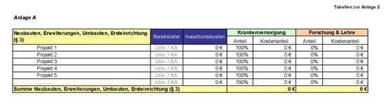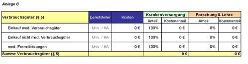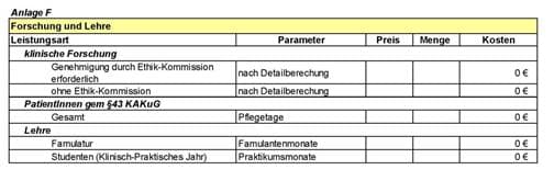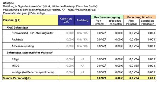 (4) Die Tabellen laut Muster der Anlagen A bis F zu dieser Anlage dienen der Unterstützung der Universität und des Rechtsträgers der Krankenanstalt bei der jährlichen Budgetplanung (Abs. 3) und bei der Ermittlung des Klinischen Mehraufwandes.